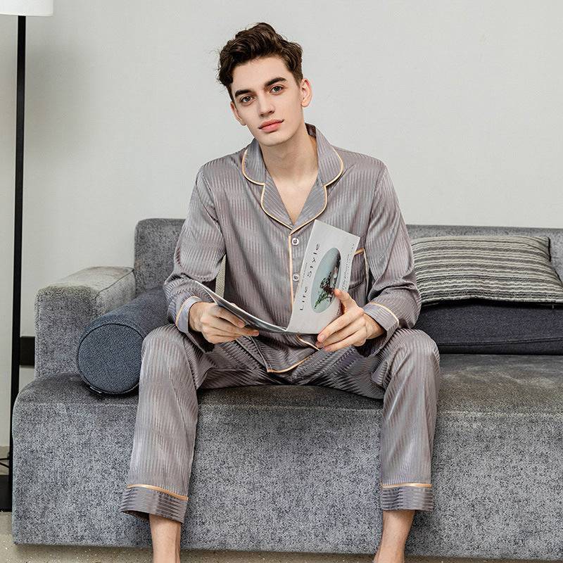 Men's Long Sleeved Trousers Ice Silk Pajamas